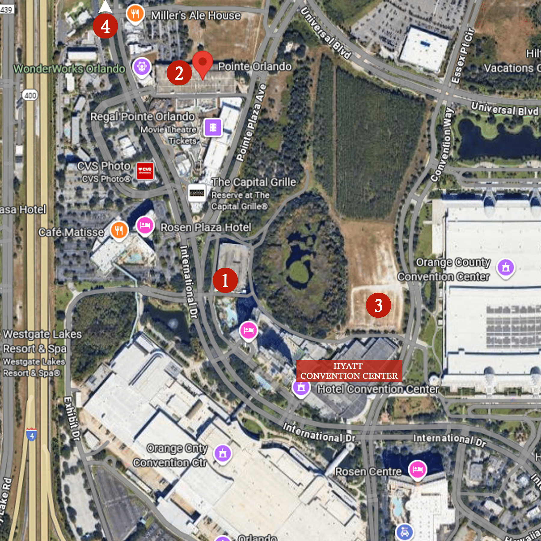 2. Pointe Orlando: $10 for 3+ hours (10 min walk) 9101 International Drive